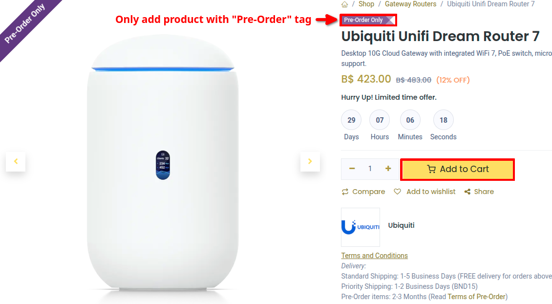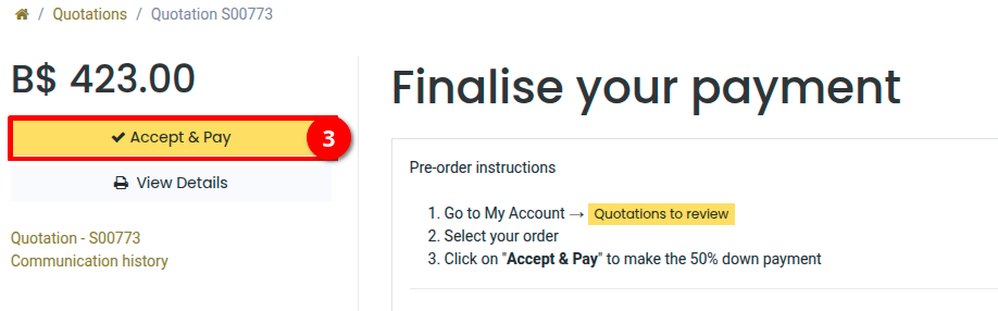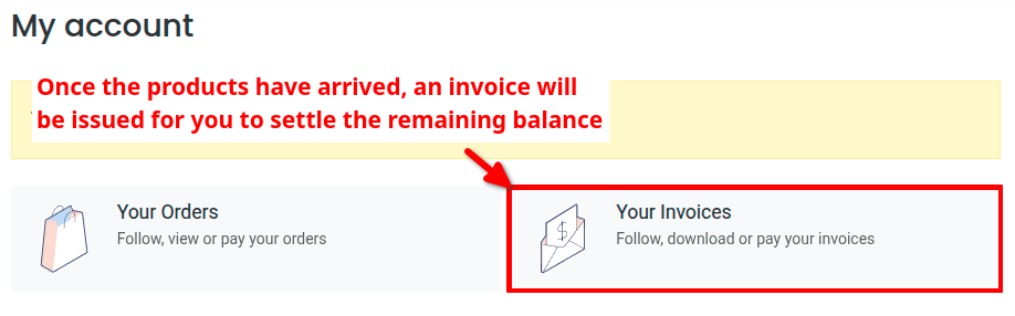 Once the pre-order products have arrived, you will be notified to make another payment for the remaining balance before the product delivery.